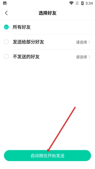 4、在【选择好友】页面选定发送范围后,点击【启动微信开始发送】按钮,完成图文消息的群发操作。