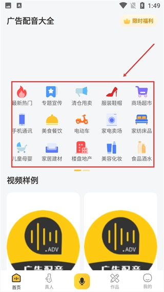 1、在首页,选择想要配音的广告类型。