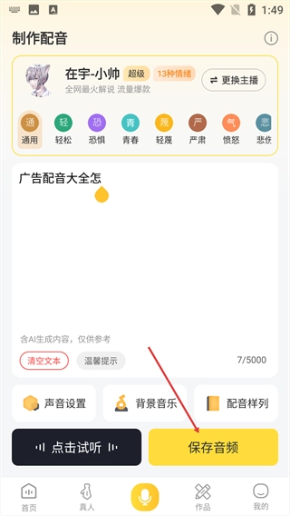 4、输入完成后,点击【保存音频】,完成配音。