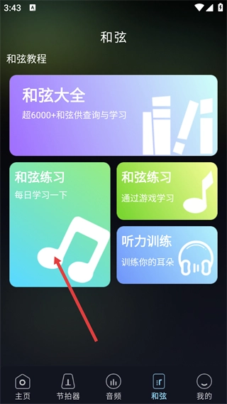2、进入【和弦】页面后,能看到【和弦大全】等功能选项,点击其中的【和弦练习】,即可进入和弦练习的课程列表页面。