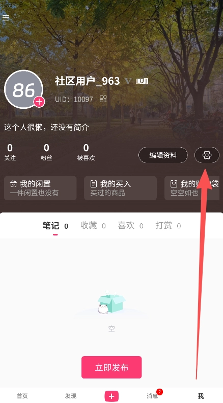 1、在我进入个人页面,点击右上角齿轮图标进入“设置”。
