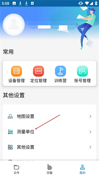 2、在个人中心页面,点击【测量单位】选项可进入单位设置页面。