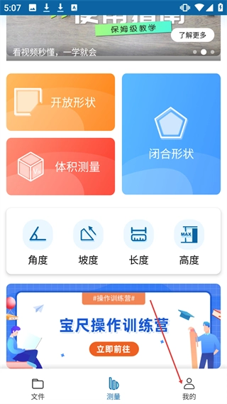 1、在宝尺的测量页面,点击底部的【我的】选项可进入个人中心页面。