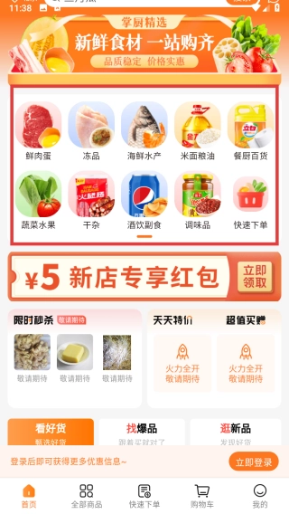 掌厨商城免费安装最新版本啦!这是一款能为大家提供优质餐饮购物与采购服务的应用程序,通过它,你可以接触到种类丰富的优质商品食材,享受一站式的食材购买体验,让食品采购既安全又省心,而且平台的下单配送服务十分迅速。该应用由成都市掌上食材科技有限公司专为用户研发打造,新人注册还能领取丰厚福利,所有食材均保证正规正品。对这款软件感兴趣的朋友,不妨来本站体验一下吧!