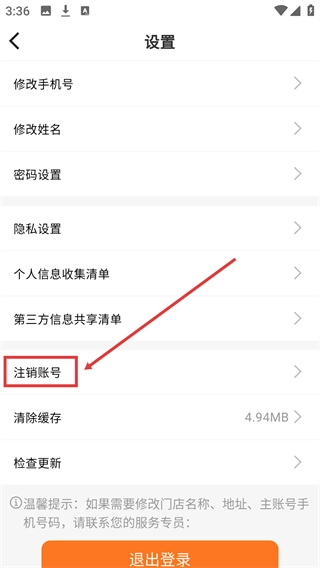 3、进入【设置】页面后,找到【注销账号】这一选项,点击它会弹出账号注销的确认窗口,以此为账号注销操作做好准备。