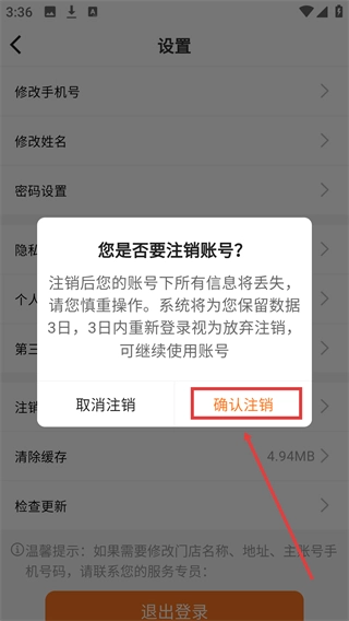 4、在账号注销的弹窗界面里,仔细确认提示信息无误后,点击【确认注销】按钮,就能提交账号注销的申请了。