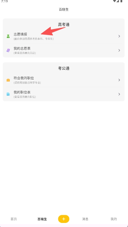 2、在页面选择“高考通”模块的“志愿填报”功能。