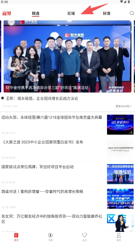 1、“区域”频道提供基于地理维度的商业资讯,聚焦不同省市的经济发展、政策与商业机会。