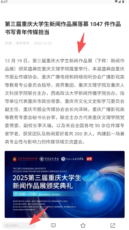 3、在新闻详情页中可阅读完整内容,并能在页面底部参与评论与互动。