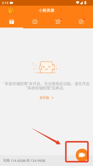 1、打开小熊录屏,在主界面选择录屏功能。你可以根据需要设置视频分辨率,帧率和画质等参数。