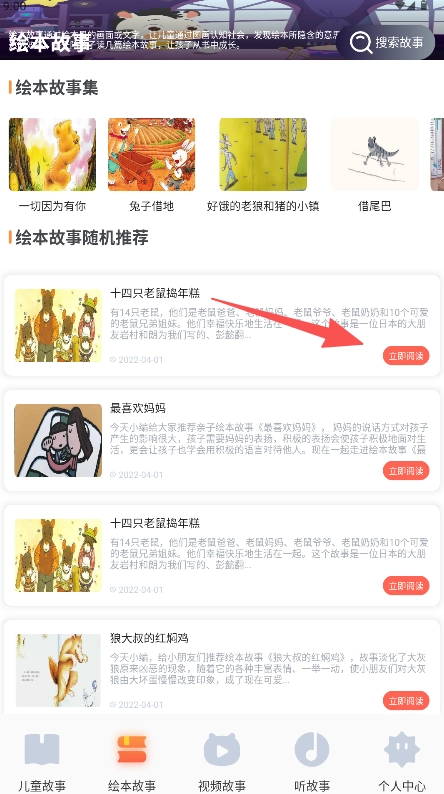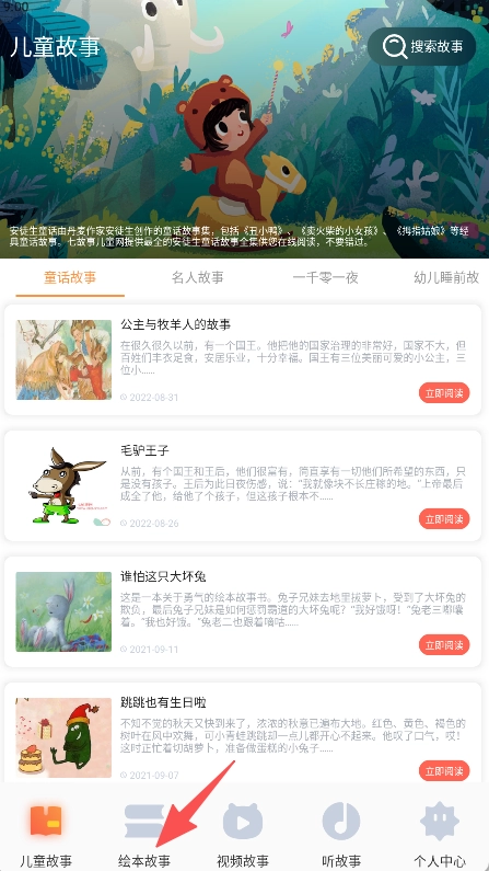 1、在首页底部导航栏点击“绘本故事”选项进入绘本库。