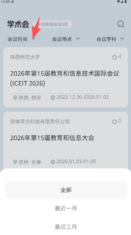 2、配备多维度筛选功能,能够依据会议时间、举办地区、所属学科等各类条件实现快速筛选。