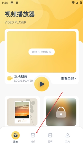 1、打开视频播放器,点击底部【格式】选项进入视频格式转换页面。