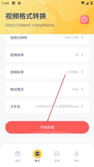 4、在视频格式转换页,确认参数后点击【开始转换】即可执行格式转换操作。