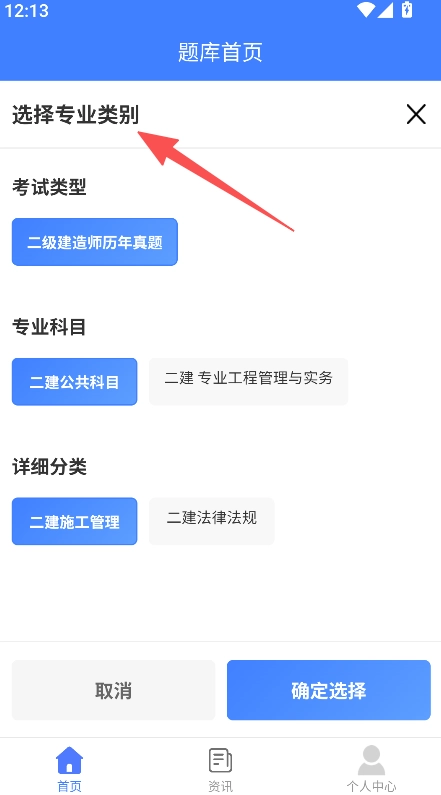 1、聚焦建造师考试备考,设专业类别选择功能,分考试类型等层级分类,适配不同专业科目的备考需求。