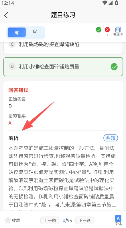 3、答题后展示对错结果、正确答案及解析,及时辅助理解考点,提升备考的有效性。
