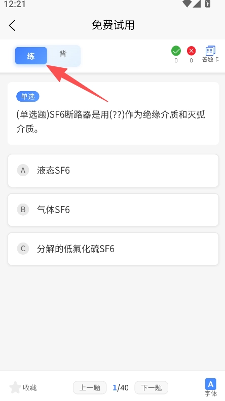 2、支持模式切换功能,在免费试用页面点击练选项,切换至对应学习模式。