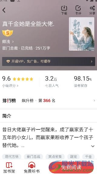 2、点击进入阅读页面,右下角的免费阅读点一点。