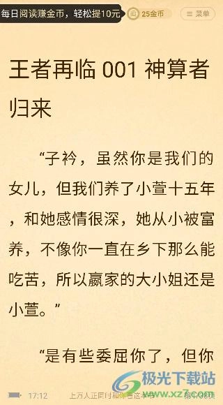 3、这里就是阅读的页面啦,右上角的菜单点一点进入。