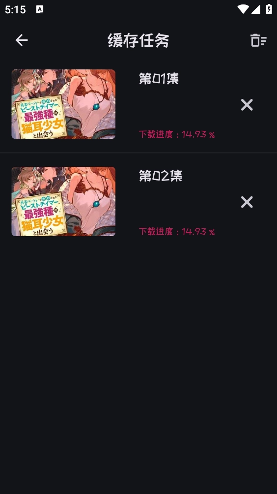 3、最后进入缓存任务中就可以查看进度,完成后就可以进行观看啦。