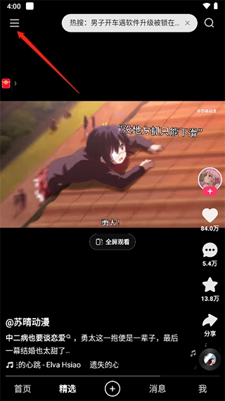 1、首先打开快手,然后找到左上角的【三】点击。