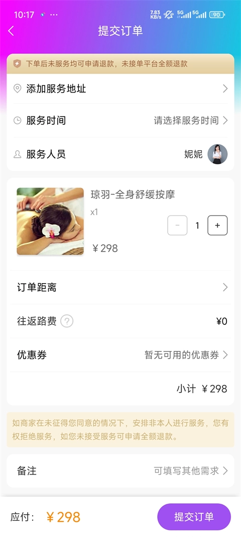 3、退款无忧:要是商家或技师临时爽约,您不用提供任何理由,就能拿到全额退款。