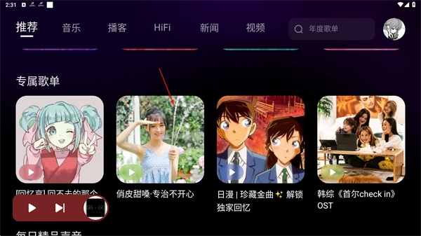 1、在腾讯爱趣听的首页里,找到专属歌单板块中的目标歌单,点击它就能进入该歌单页面。