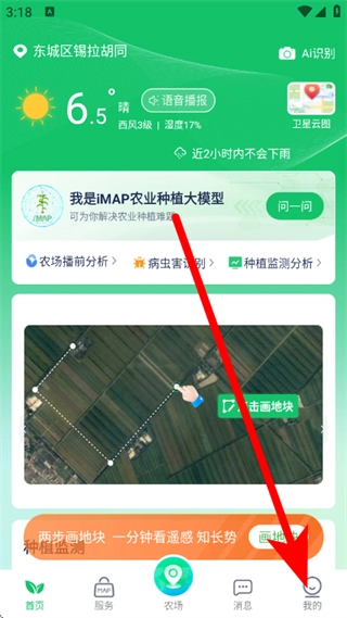 1、打开map智农,点击底部我的选项,进入个人中心页面。