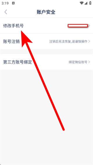 4、在账户安全页面,点击修改手机号,进入验证账号页面。