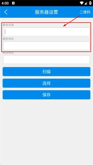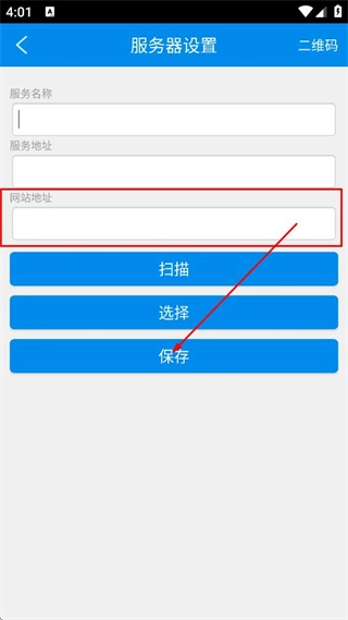 3、进入服务器设置页面,把网络地址对应的信息填写好,再点击保存,这样就完成服务器设置了。