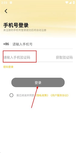 3、在验证码输入框内填入验证码,随后点击登录按钮,即可完成账号登录流程。