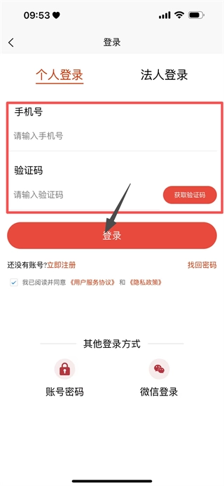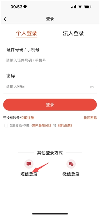 3、在短信登录表单中,填写手机号,点击获取验证码后填写,点击登录,完成登录。