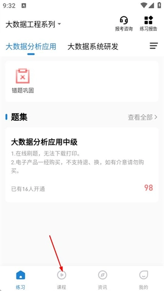 1、在365职称首页,点击底部的课程选项,即可进入课程页面。