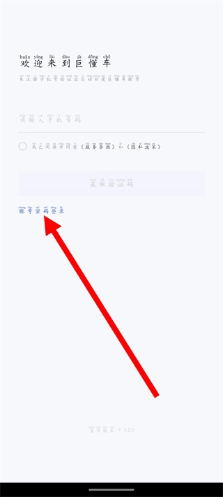 1、在巨懂车的欢迎页面,点击账号密码登录选项,进入对应的账号密码登录界面。