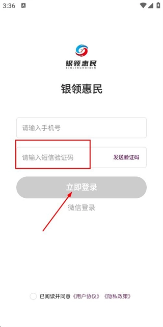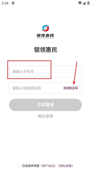 2、在登录页面输入手机号,勾选相关协议后,点击“发送验证码”按钮。