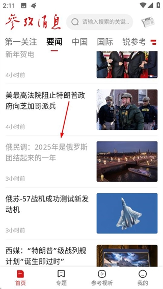 1、打开参考消息后,点击想要查看的新闻内容,就能进入该新闻的详情页面。