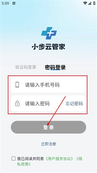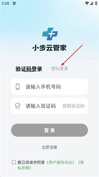 2、在验证码登录页面,点击密码登录选项,切换到密码登录界面。