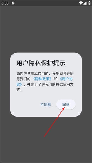 1、在用户隐私保护提示弹窗里点击同意,即可进入登录页面。