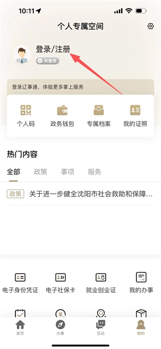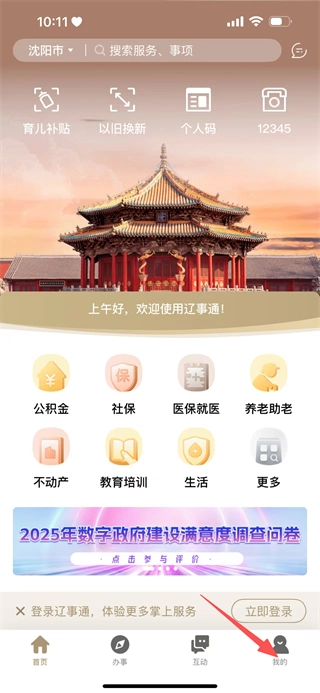 1、打开辽宁通APP,在首页底部找到“我的”选项并点击,即可进入个人中心页面。