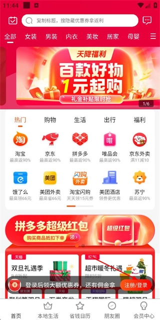整合购物、出行、本地生活、外卖等多场景优惠服务,无需切换多个平台,即可满足衣食住行的优惠需求,大幅提升生活消费性价比。