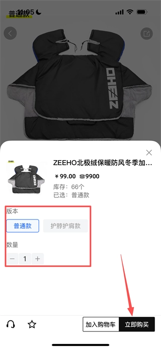 4、在规格选择弹窗中选好版本与数量后,点击“立即购买”按钮,即可进入确认订单页面。