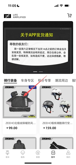 进入ZEEHO后,点击底部的“极市”选项,即可进入极市商品页面。