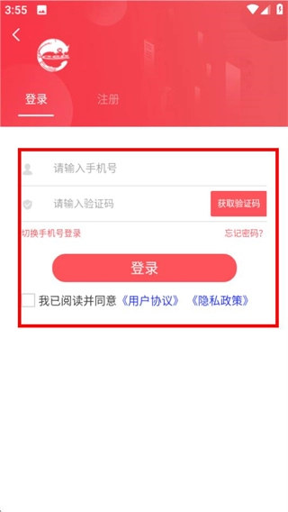 3、进入登录页面后,填写相关信息并勾选协议,随后点击登录按钮,就能完成账号登录操作。
