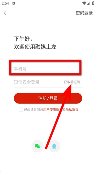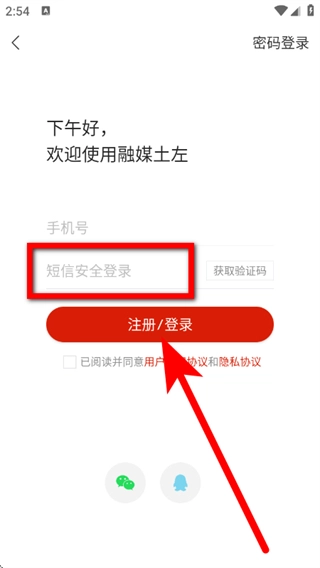 3、进入密码登录页面后,先输入手机号,接着点击“短信安全登录”选项,再点击“获取验证码”按钮。