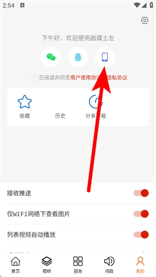 2、进入个人页面后,点击那个手机样式的图标,就能进入密码登录界面了。