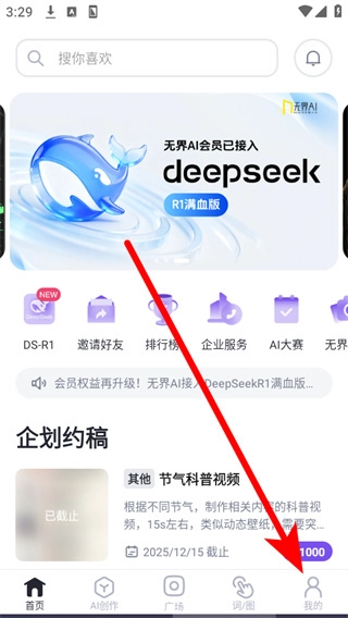 1、打开无界版图,点击底部导航栏的我的,进入个人中心页面。