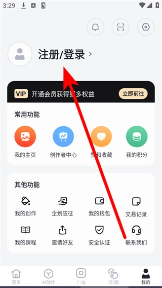 2、在个人中心页面点击注册登录区域,进入手机快捷登录界面。