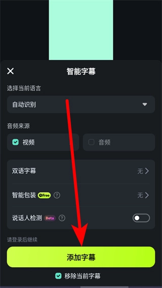 4、在智能字幕设置页面,确认音频来源选择视频,