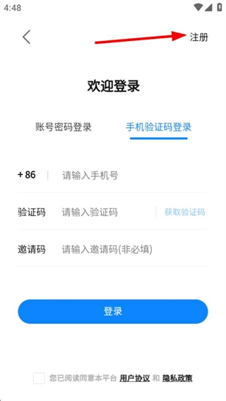 3、在登录页面点击注册选项,即可进入账号注册页面。