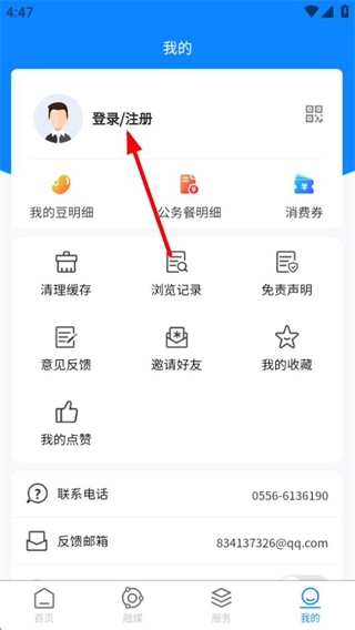 在个人中心页面,点击登录注册区域,即可进入登录页面。